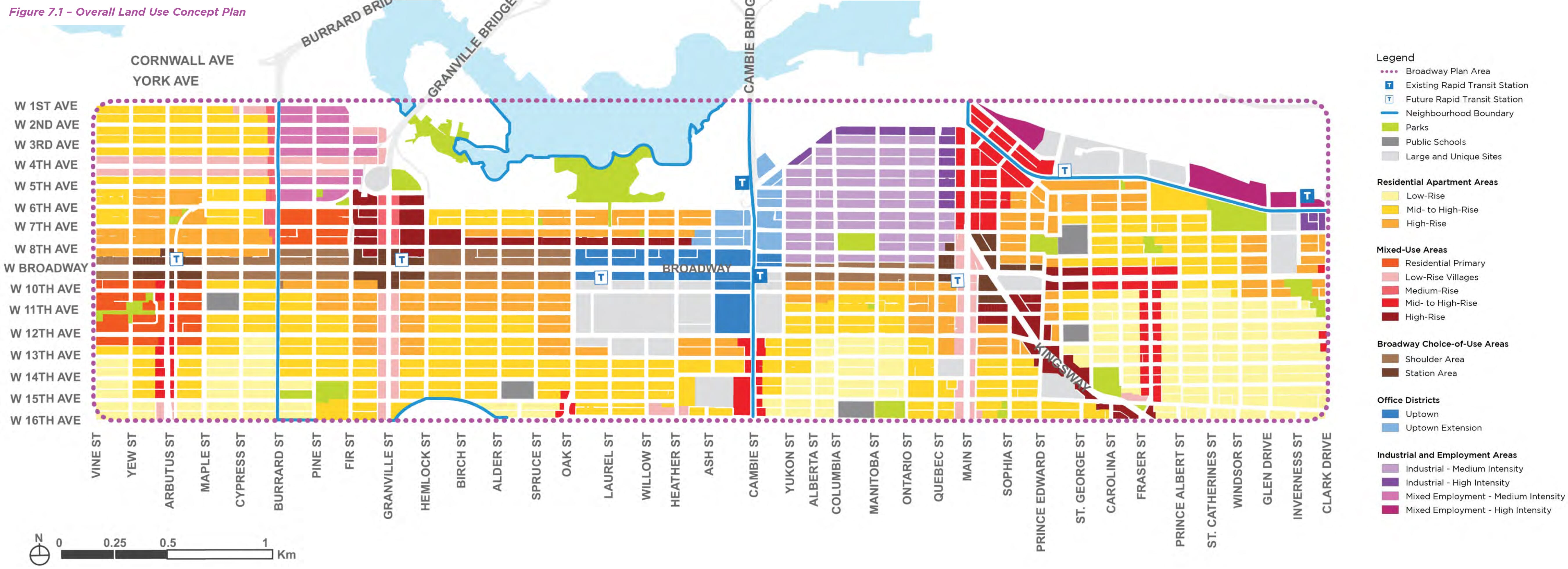 • The 30-year plan focuses on opportunities to integrate new housing, jobs, and amenities around the new Broadway Subway in parts of Kitsilano, Fairview, and Mount Pleasant.